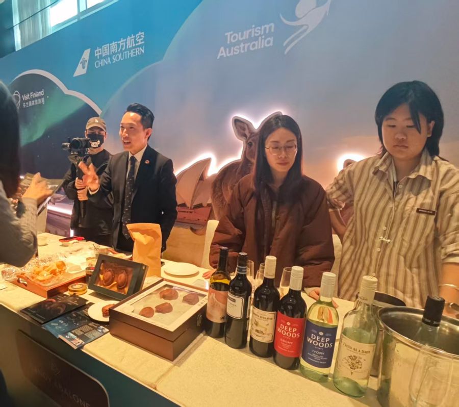 会场内设置的“冰火奇遇市集”吸引了众多参会嘉宾驻足体验,展位上摆放着来自芬兰、澳大利亚的多款特色特产。中国澳大利亚商会华南副会长彭富强接受南方财经记者采访时介绍,商会携会员企业带来了塔斯马尼亚州鲍鱼酱、新南威尔士州的牛油果油等多款产品,希望让国内消费者感受地道的澳洲风情。他表示,南航新航季加密的航线网络,不仅为赴澳旅游提供了更多便利,更为澳洲生鲜特产等高度依赖空运的产品进入中国市场搭建了高效的空中通道。